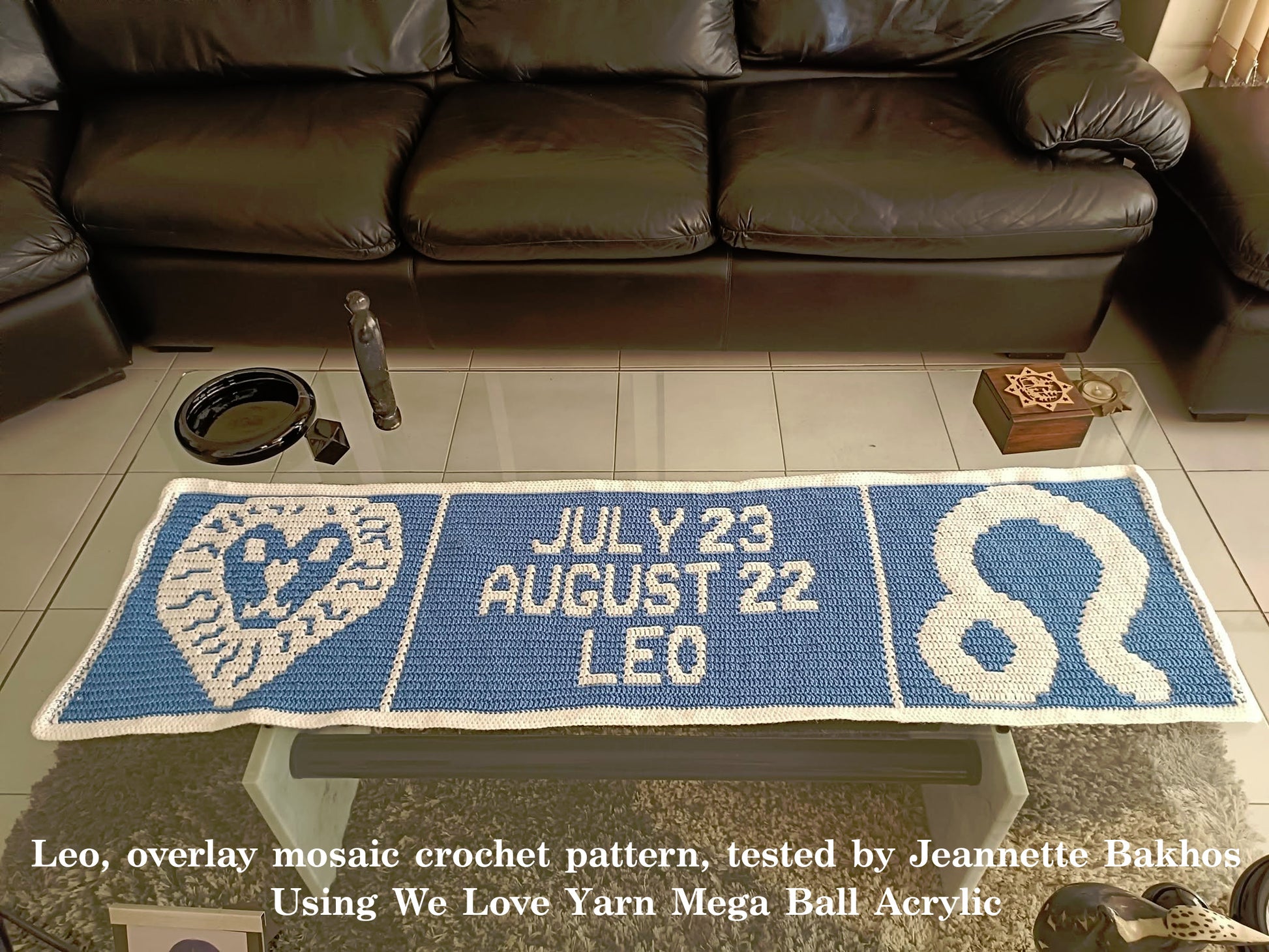 Transform your living space with the versatile Leo Crochet Pattern! Whether for a table runner, or bed runner, this pattern is the perfect addition to your home decor. It also makes up a part of the breathtaking Zodiac Blanket, featuring striking panels showcasing each Zodiac sign.