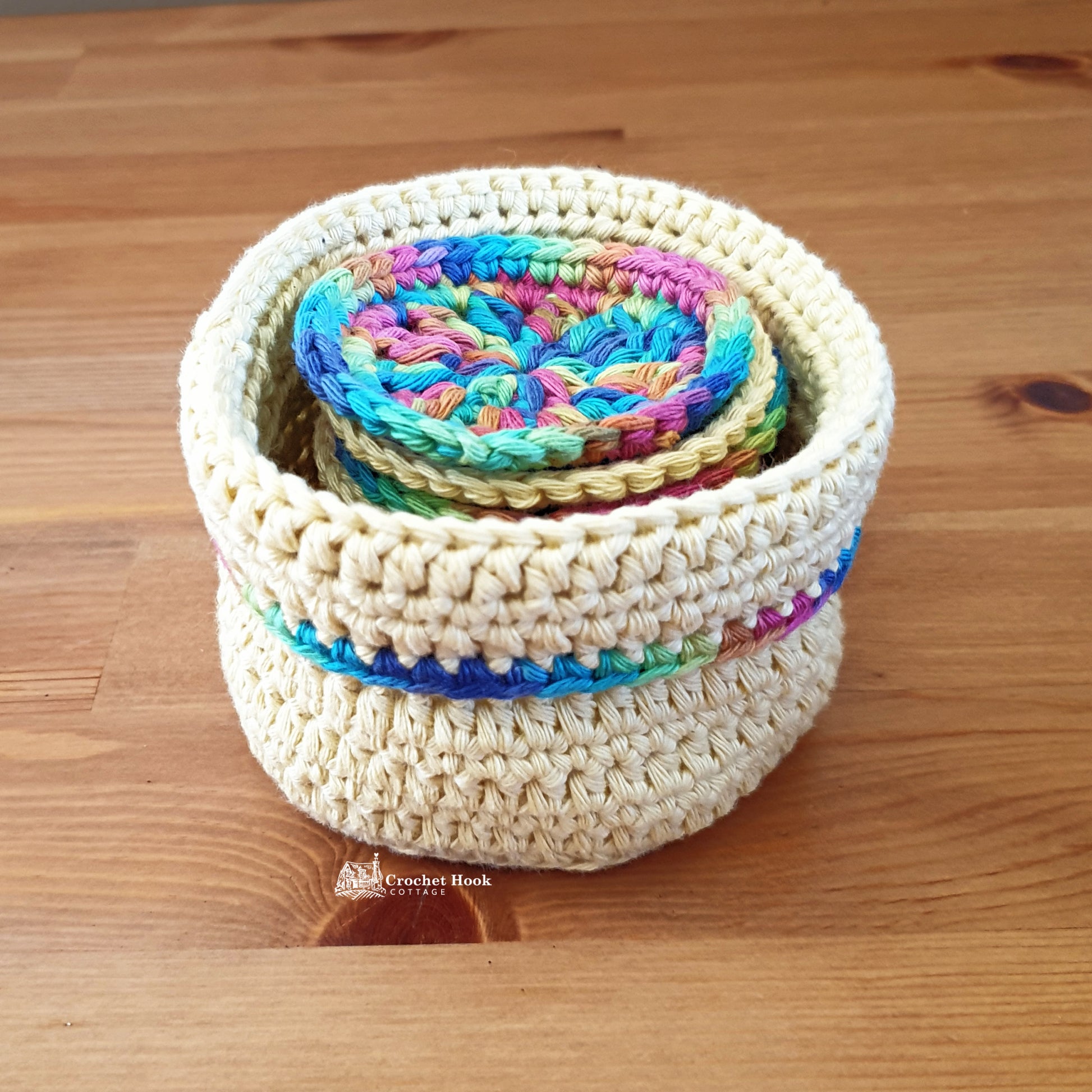 Both the Scrubbies and Basket are made with 100% cotton yarn.